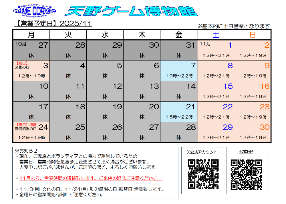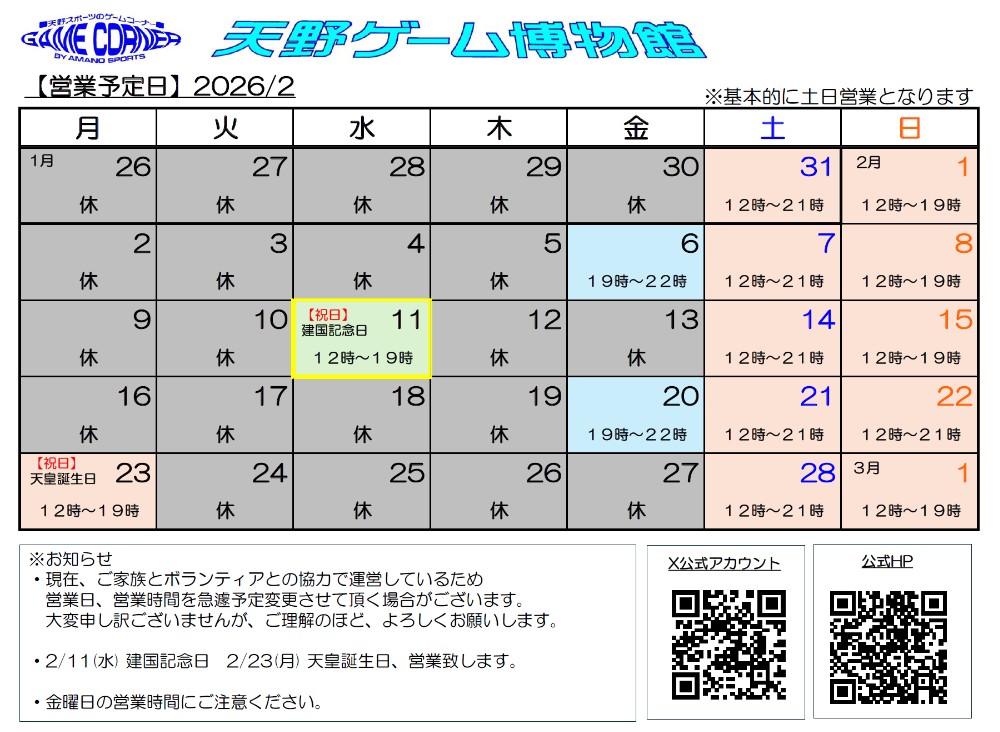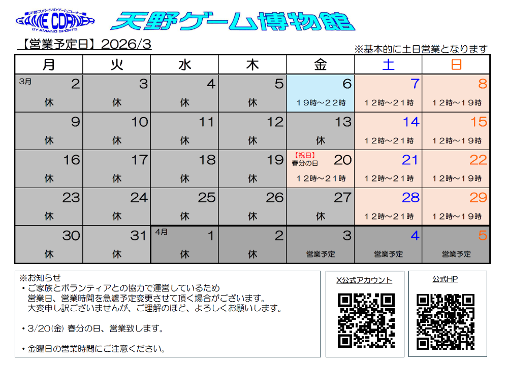 (変更の際、なるべく早く公式Xの方で告知致します)