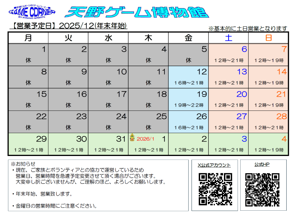 本年も【天野ゲーム博物館】をよろしくお願いします。